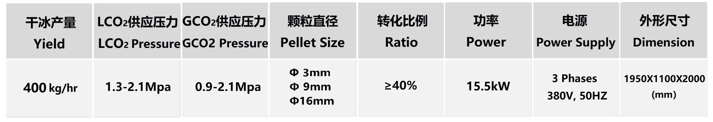 Product parameters